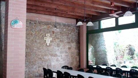 A corner of the 100-seat dining room of the Accoglienza Femminile of Fra Biagio Conte's Missione Pace e Speranza