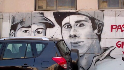 If you die young in Ballaro` someone will immortalize you with a giant mural of your face and maybe a garden, tended like an altar, that no one will defile. Pasquale Ferrara and Giuseppe Giufridda were two youths of Ballaro` and this mural of them was near the Mercato del Usato, the used items market, otherwise known as the Mercato del Rubato, the market of stolen things. The boys were inseparable, both 18 years old, on a scooter. The police,who rarely enter Ballaro`, had just had a report of a stolen scooter in the area. They told the boys to pull over. The boys probably didn't have a license to drive nor vehicle insurance, so they tried to elude the police by driving the wrong way into a one-way street, and ran headlong into a car. They both died. Together. At their funeral,the mourners released balloons and doves. There were riots in the street, locals throwing bottles and rocks at the police, writing on all the clean walls that the police were infamous, the police were shit. They lit the garbage containers on fire,and the cars parked near them went up in flames. Now all that is left of them are their portraits and the grafitti expressing solidarity with the boys beyond the grave, promising never to forget them. This is how they make the stones talk.