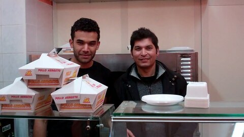 Two guys from Tunisia and Bangladesh serve bi-national fast food.