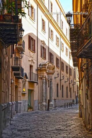 Via Cartari in the Kalsa, just a block east of the boulevard Via Vittorio Emanuele, is honeycombed with six-sided paving stones.