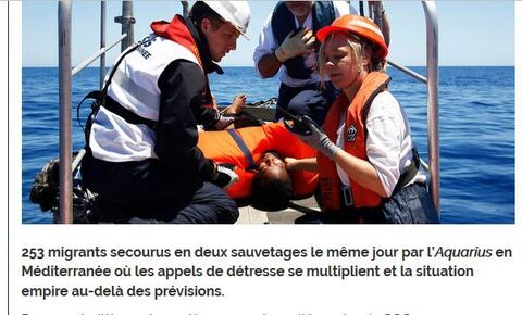 For its eighth and ninth rescies the French ship Aquarius bellonging to the non profit SOS Mediterranee rescued 253 shipwreck victims on two rubber rafts. The first mission saved 137 immigrants including six women and6 children under 16 years old. The were mostly from Guinea-Conakry and Mali. Two of the women were dehydrated and very weak. At least three people had broken arms. Doctors on board said at least one broken arm was due to maltreatment and torture. As soon as these immigrants were on board the Aquarius went to its next rescue, of 116 people on another sinking raft, including 16 women and a three-year-old child.