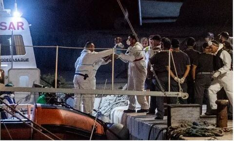 On Saturday night, the migrants were transferred from the Norwegian-flagged rescue boat Ocean Viking, operated by the French charities SOS Méditerranée and Médecins Sans Frontières (MSF), to a coastguard vessel before being taken ashore on the Sicilian island of Lampedusa.