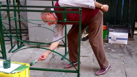 I took this man's picture while he painted a plant stand and he said, "Some people DO work."