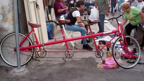 Three-seater bicycle at the Mercato del usato, a flea market in Ballaro`, Palermo