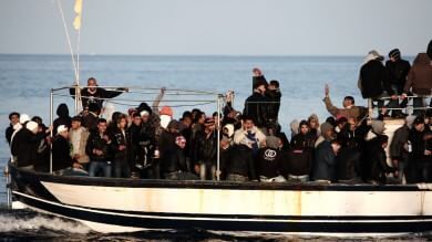 This is a freeze frame from a video taken by Italian Coast Guard rescue and recovery divers of two refugees who died embraced on the floor of the Mediterranean Sea just off the Sicilian island of Lampedusa on Oct. 3, 2013, after the worst tragedy in those seas since 2000. Three hundred sixty-six people drowned together that day.
