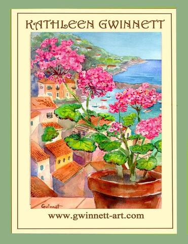 Kathleen Citrolo Gwinnett is a prolific and wonderful watercolor artist of Sicilian descent living and painting in North Carolina. She recently returned from ten days in the center of Sicily, near Caltanisetta, where she painted the vistas she had from her house. I met Kathleen on one of my book tours but we have been exchanging e mails for years.