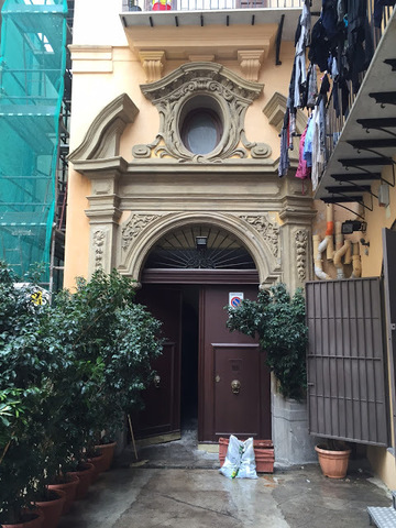 The rear entrance to the upper floors of Palazzo Vannucci, seen from Piazza Santa Sofia.